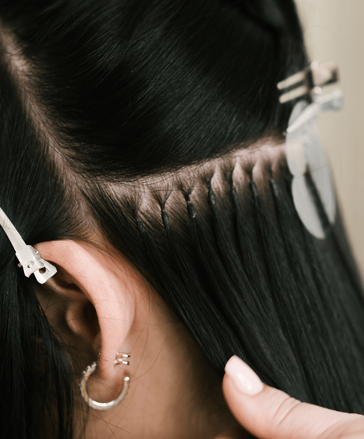 At Hair Studio 7, we offer a variety of professional hair extension methods—I-Tip, Tape-In, and Beaded Wefts but K-Tip extensions are our specialty.