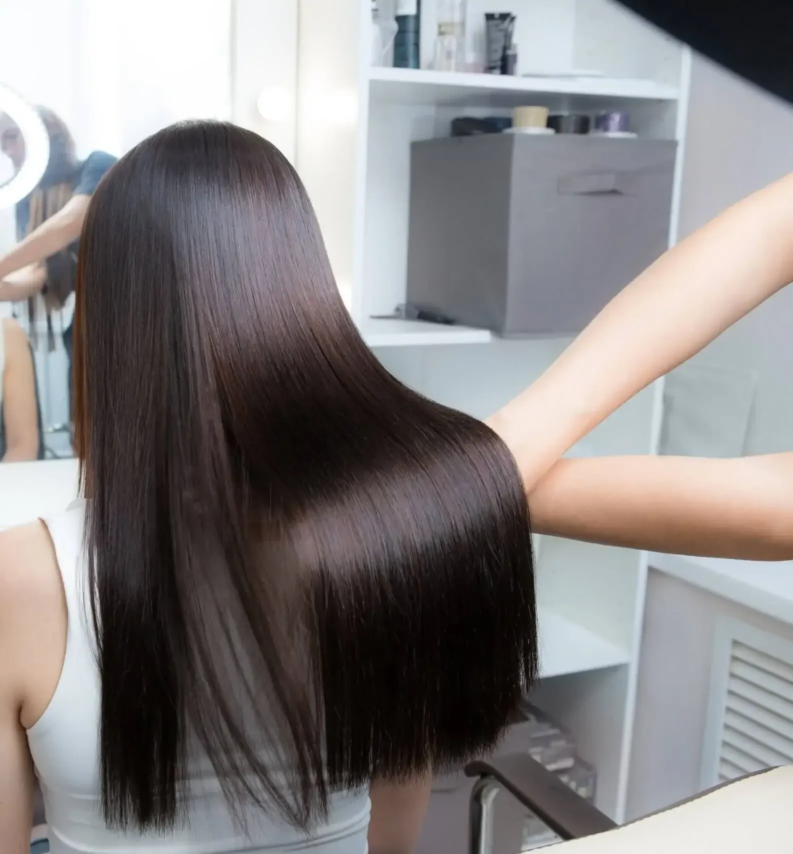 Once the treatment is complete, we rinse off the product, dry your hair, and style it with professional tools and products.